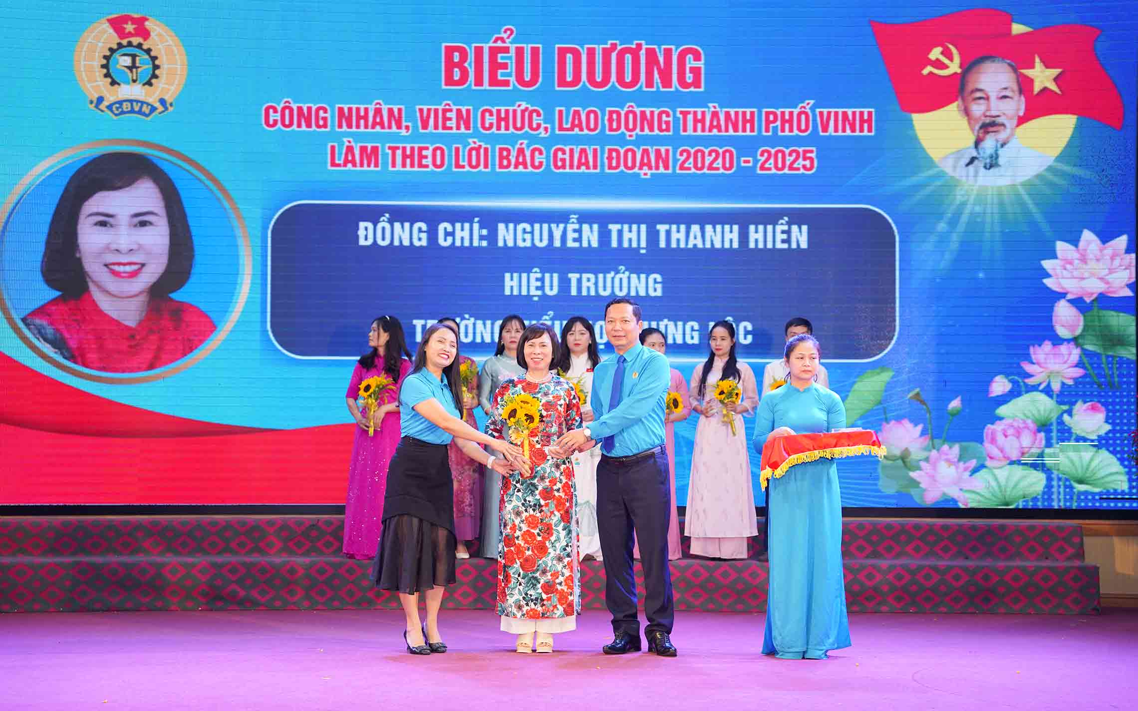 En la mañana del 16 de mayo, el sindicato de la ciudad de Vinh celebro una conferencia para alabar a los trabajadores, funcionarios y trabajadores tipicos para seguir al tio Ho en el periodo de 2020 a 2025