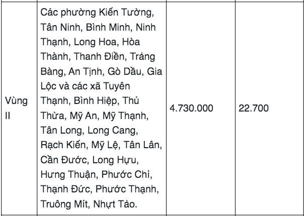 En el Apéndice adjunto al Decreto 293/2025/ND-CP se regula la lista de áreas donde se aplica el salario mínimo a partir de 2026. Entre ellas, hay contenido sobre la lista de áreas donde se aplica el salario mínimo de la provincia de Tay Ninh.