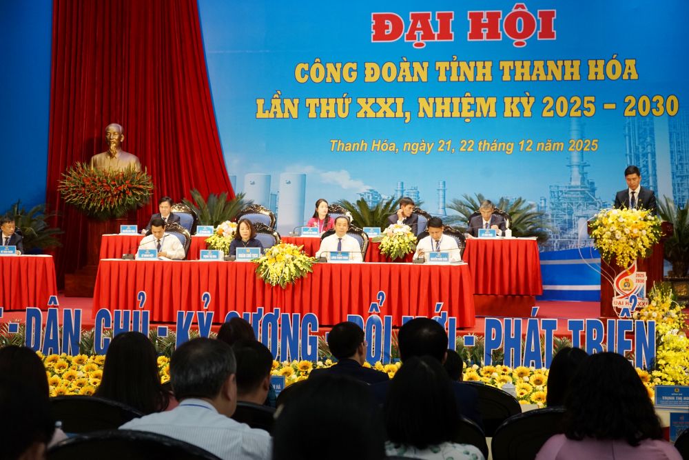Con el lema 'Unidad - Democracia - Disciplina - Innovacion - Desarrollo' el XXI Congreso del Sindicato Provincial de Thanh Hoa mandato 2025-2030 se inaugurara oficialmente en la mañana del 22 de diciembre con la participacion de 368 delegados oficiales representantes de mas de 300.000 miembros del sindicato trabajadores empleados publicos y trabajadores en la provincia.