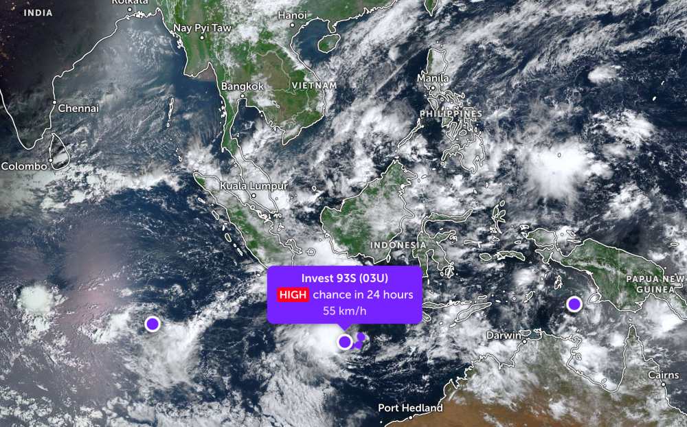 Ademas de la depresion tropical debilitada por la tormenta Bakung otras 2 depresion tropical se estan intensificando en el Oceano Indico y el Pacifico causando tormentas electricas.