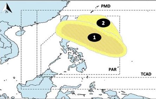 Debido a la influencia de las depresiones tropicales, estan a punto de convertirse en tormentas, la region de Bicol, Visayas, las Islas Dinagat, Surigao del Norte, Mimaropa, Cavite, Laguna, Batangas, Zambales, Bataan son nubladas, dispersas y tormentas. En tormentas electricas, existe la posibilidad de inundaciones repentinas y deslizamientos de tierra.