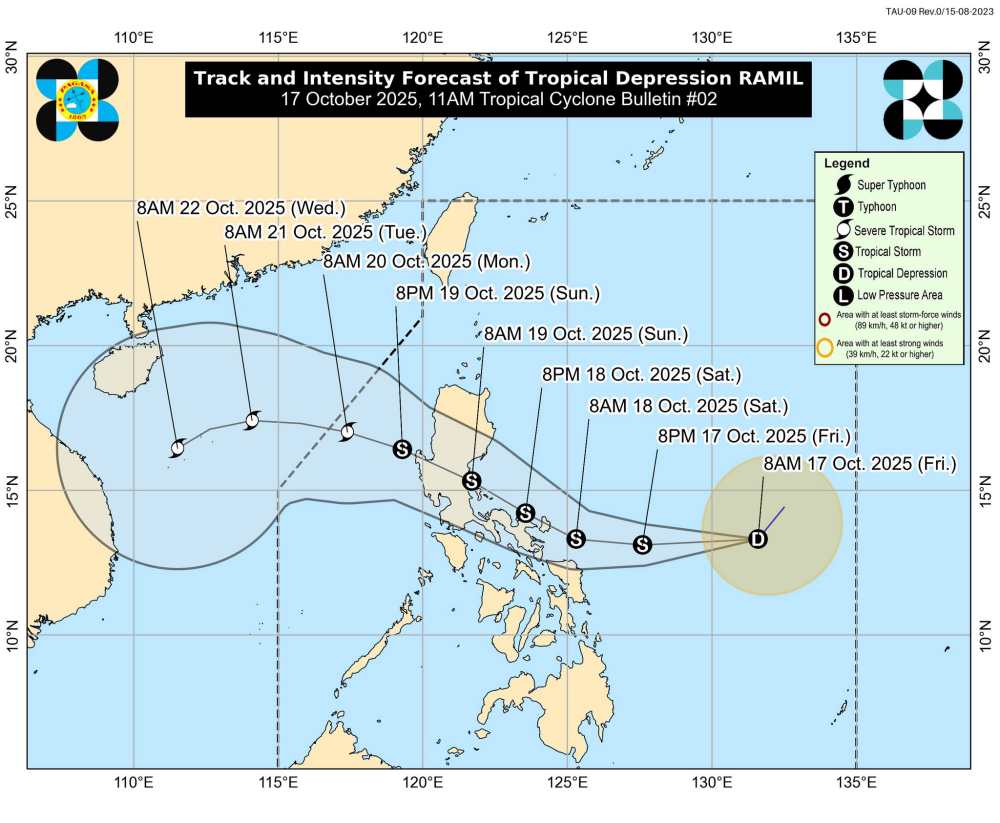 A las 7:00 horas del 25 de octubre la depresion tropical se movera hacia el suroeste a una velocidad de unos 20 km/h. La posicion del centro de la depresion es de aproximadamente 15,5 grados de latitud norte - 114 1 grados de longitud este a unos 250 km al este de la zona especial de Hoang Sa con intensidad gradualmente debilitada. El viento mas fuerte es menor que el nivel 6.