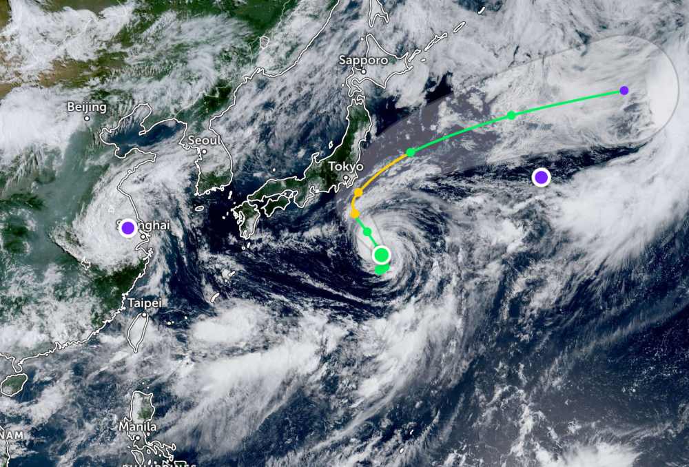 La Agencia Meteorologica de Japon (JMA) advierte especialmente desde la zona de la isla Izu hasta la zona urbana de Kanto (incluido Tokio) desde la noche del viernes 1 de agosto hasta la mañana del sabado 2 de agosto la zona costera de este agua estara cubierta por olas de 5-6 m de altura y la precipitacion concentrada alcanzara los 100 mm en 24 horas (la isla Izu) 60 mm en Kanto el proximo dia.