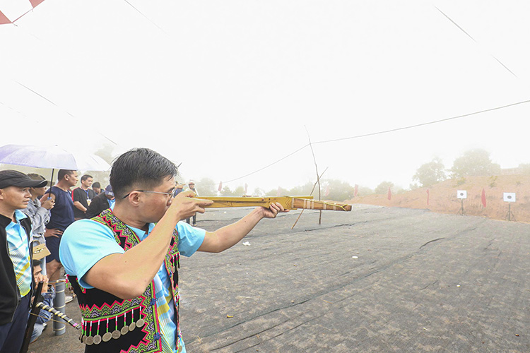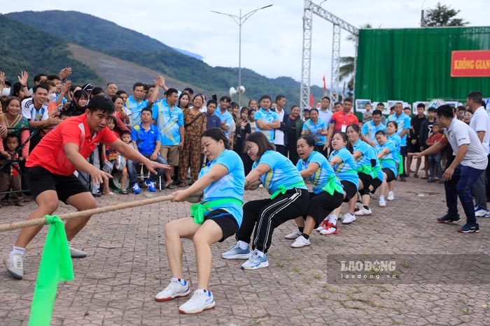 El ambiente festivo no solo esta animado en la superficie del agua. En el estadio de la aldea de Phi Hai barrio de Muong Lay se han llevado a cabo muchos deportes y juegos folcloricos con una fuerte identidad de las tierras altas como: disparar cuchillos lanzar palos de paja...