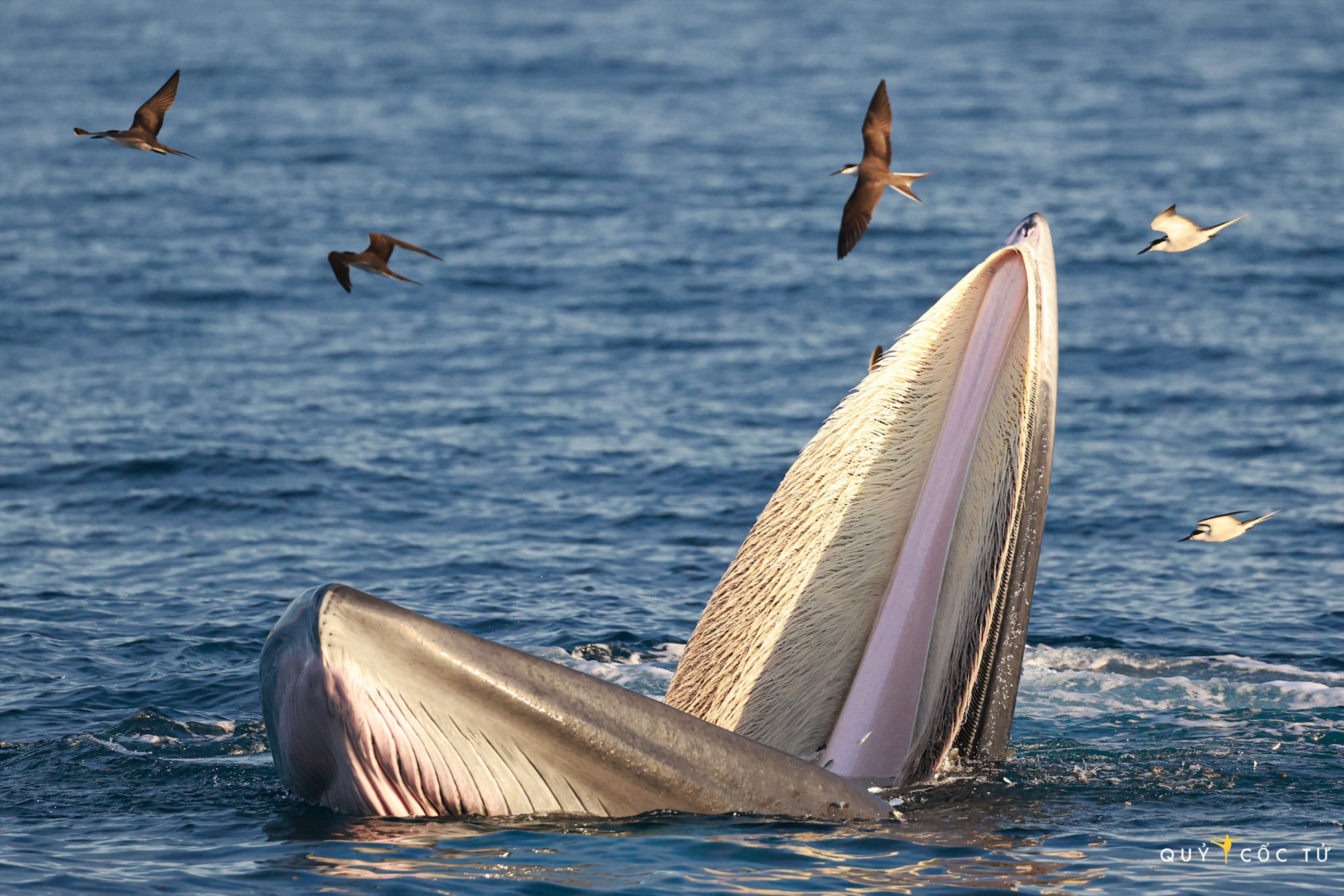 A las 7 de la mañana del 24 de junio, el Sr. Chau Thanh Tin (25 años), un guia local, y la delegacion atrapo a las ballenas nadando en el area de la isla Hon Rua. El agua de mar aqui es clara, facil de ver las actividades de la ballena.