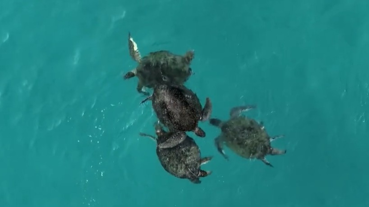 Raro espectaculo de tortugas marinas en la isla de Con durante la epoca de reproduccion