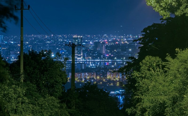 Da Nang - La peninsula de Son Tra cuando la noche cae brillante y magica.