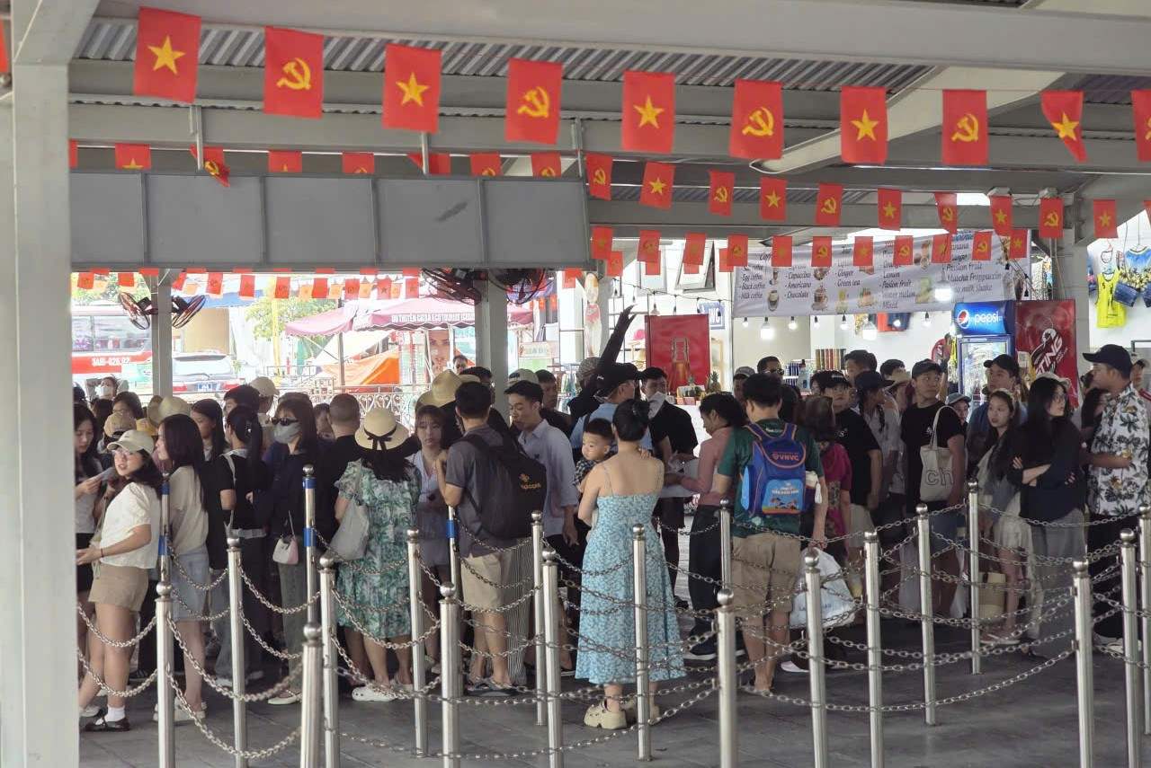 Según los registros de Lao Dong, el ferry de la ruta Dong Bai - Cai Vieng ha aumentado los vuelos para servir a la gente y a los turistas que regresan a Cat Ba para asistir al festival. El ambiente en el ferry es bullicioso pero no hay congestión, la gente puede subir fácilmente al ferry sin tener que esperar mucho tiempo.