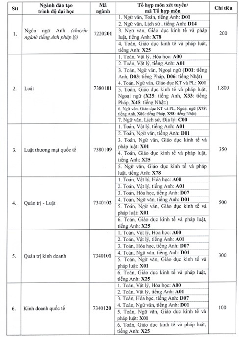 En 2026 se espera que la Universidad de Derecho de la ciudad de Ho Chi Minh no utilice el complejo C00 (Van Hoa Su Dia) y A00 (Matematica Fisica y Quimica) para la admision.