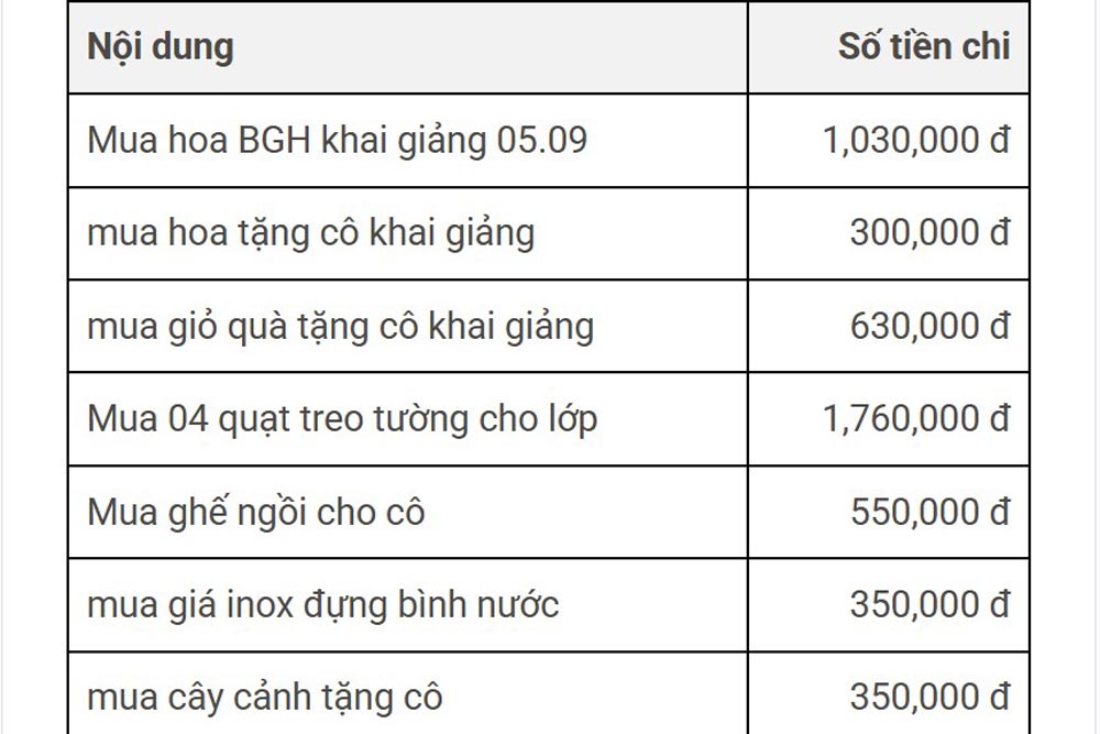 Los padres de la escuela secundaria Nguyen Trai - Ba Dinh (Hanoi) informaron que se les aplicó un nivel de pago de dinero de apoyo para el aniversario de la fundación de la escuela de 200.000 VND/estudiante.