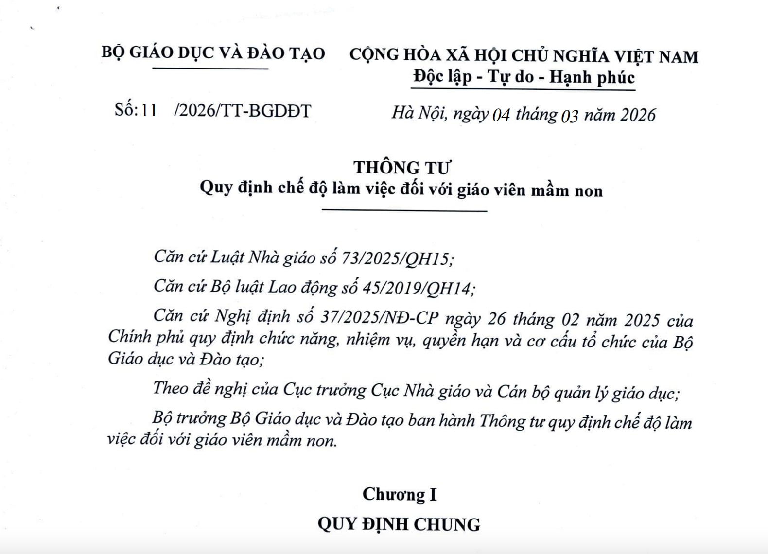 A partir del 4 de marzo, los maestros de preescolar reciben oficialmente una reducción de 30 minutos de clase por día, según las nuevas regulaciones del Ministerio de Educación y Formación.