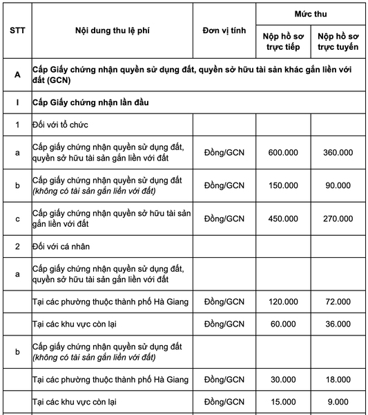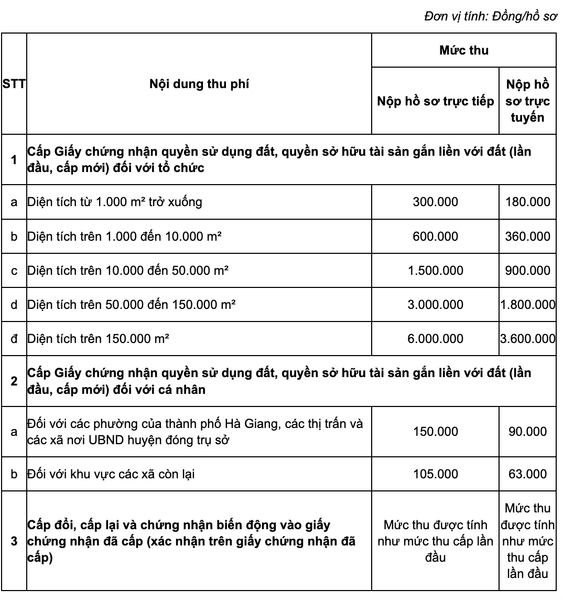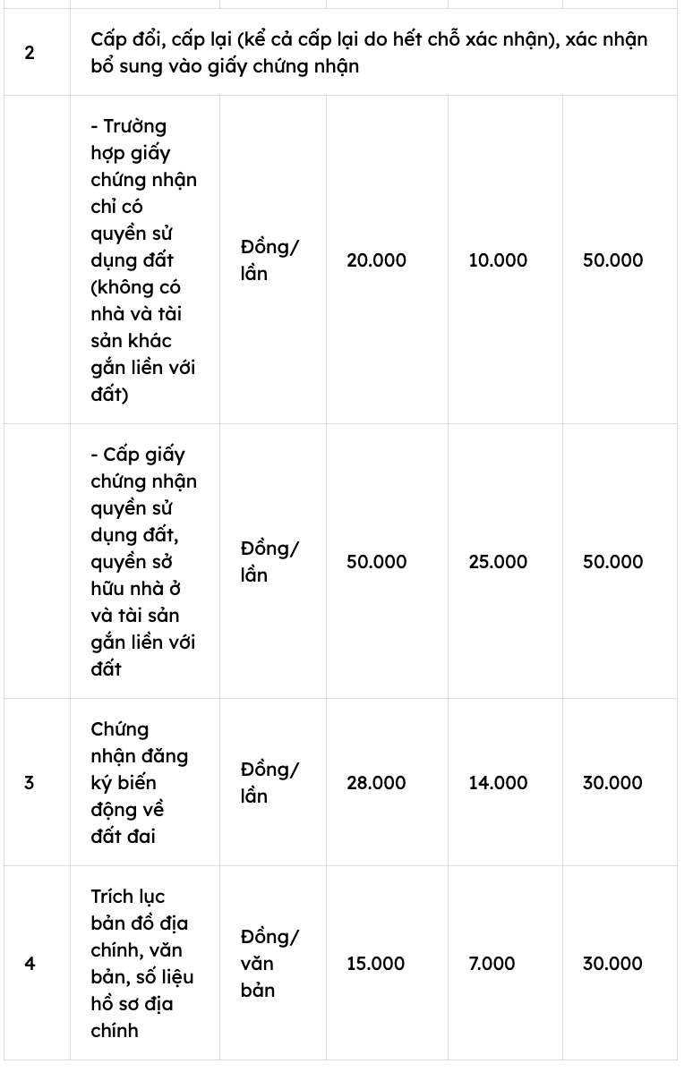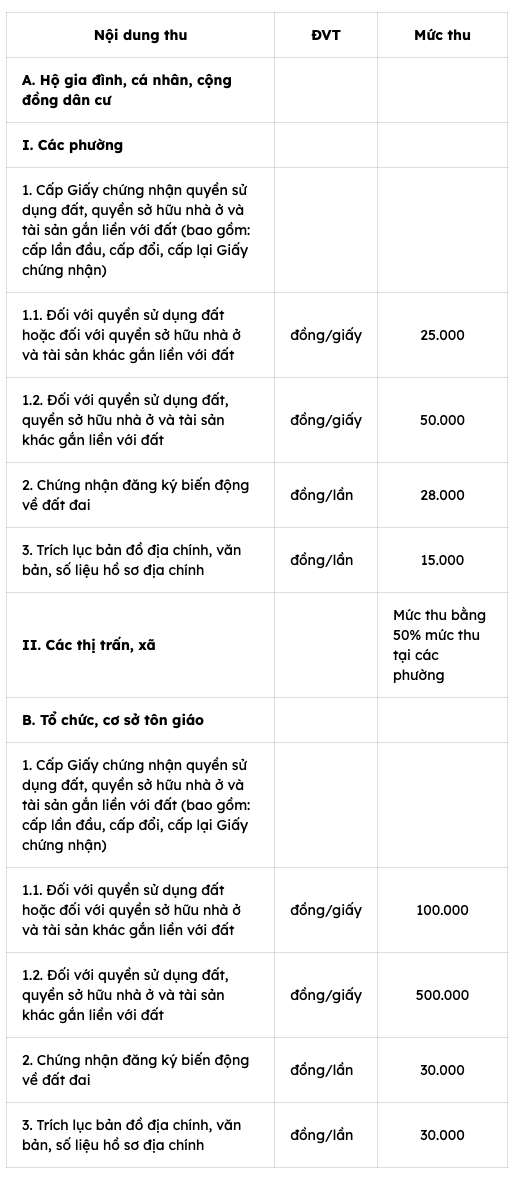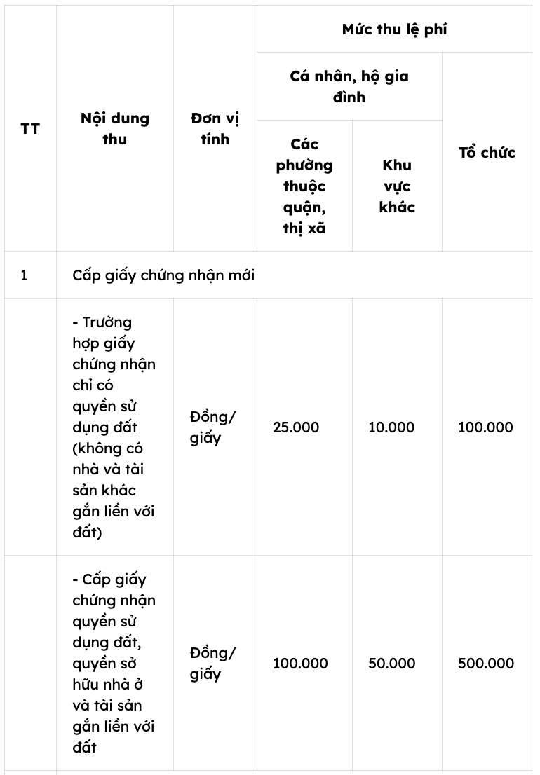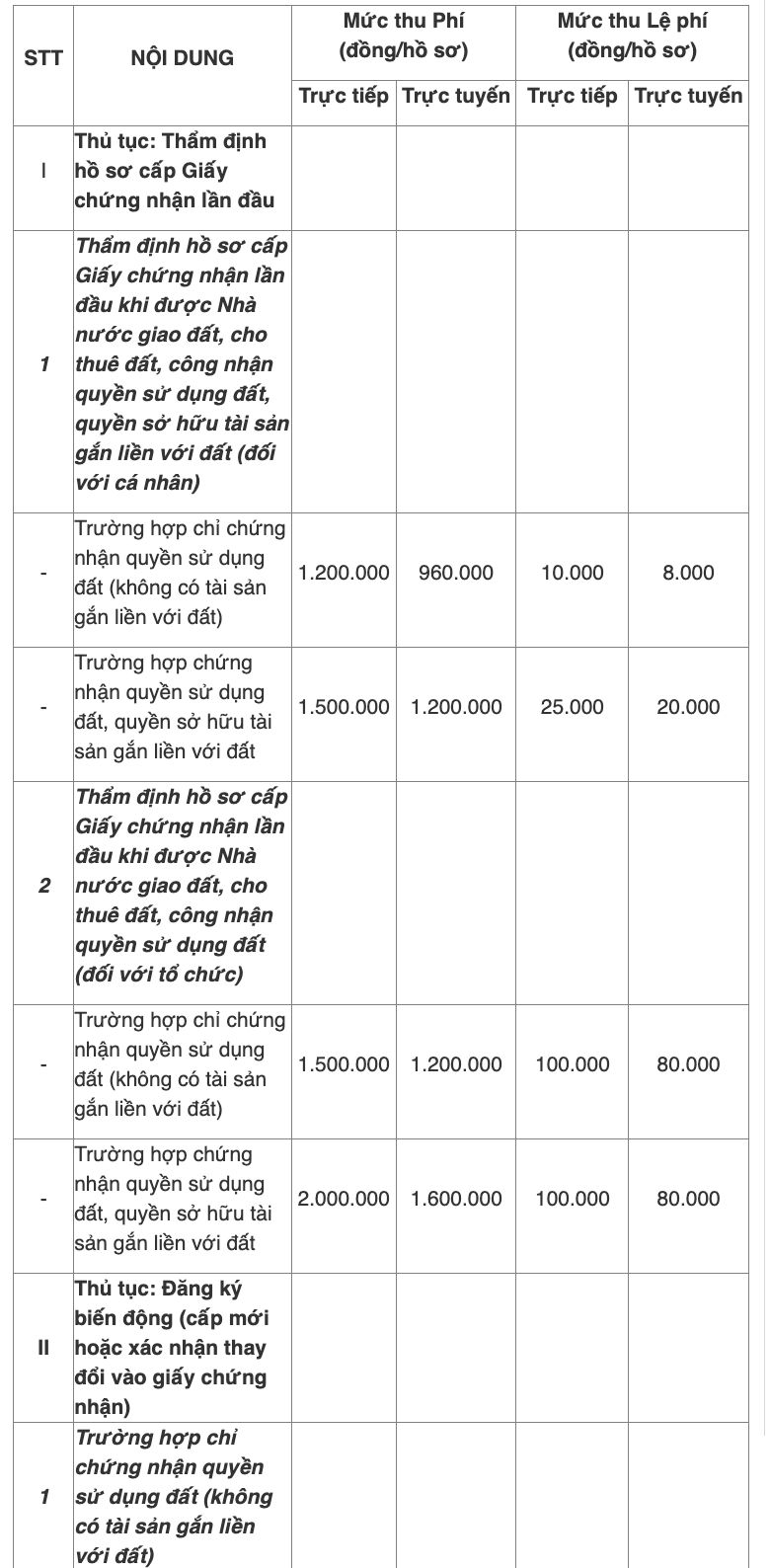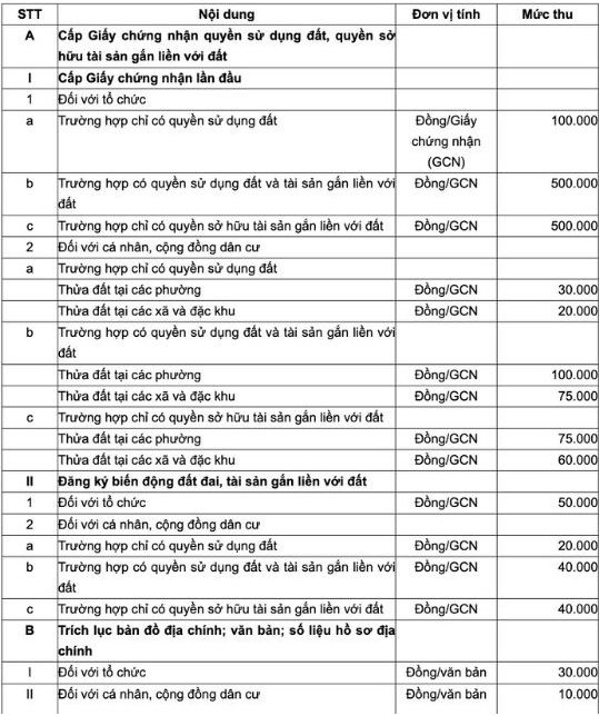 De acuerdo con la Resolucion 715/2025/NQ-HDND de fecha 1 de julio de 2025 que regula el nivel de cobro de 0 VND para algunos tipos de tarifas y tarifas pertenecientes a la autoridad de decision del Consejo Popular Provincial al proporcionar servicios publicos en linea de todo el programa incluidas las tarifas de emision de certificados de derechos de uso de la tierra derechos de propiedad de la casa y bienes relacionados con la tierra.