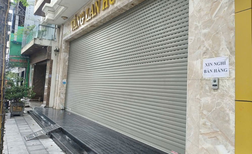 La observacion del periodista muestra que aunque a media mañana las famosas joyerias como Kim Chung Kim Lien y Lan Huong todavia estan en estado de 'caja cerrada con llave' con la parte delantera pegada con la inscripcion 'Por favor dejen de vender mercancias'.