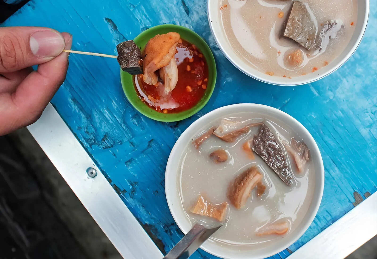 Asi que, cosas como el congee, el cerdo, el cocodrilo, originalmente eran para la clase trabajadora, no para la clase pescadora, sino para la clase patronal. Un par de lagartos cuesta entre 20 y 30 mil, lo cual es lo suficientemente agradable para un viaje de tarde, y los lagartos suelen estar en callejuelas, no en calles.