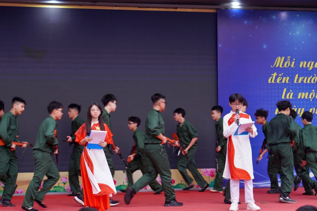En el festival, los estudiantes tuvieron la oportunidad de aprender sobre la historia a través de la actividad de presentación del libro "Lluvia Roja" del autor Chu Lai. Al mismo tiempo, escucharon a los maestros contar historias históricas durante 81 días y noches de lucha, protegiendo la ciudadela de Quang Tri.