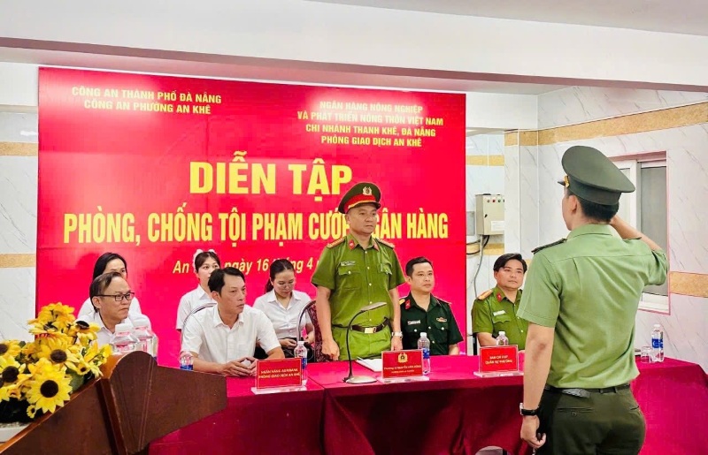 La policía del barrio de An Khe, ciudad de Da Nang, organizó un simulacro de manejo de situaciones de robo de propiedad en el Banco de Agricultura y Desarrollo Rural - Oficina de Transacciones de An Khe.