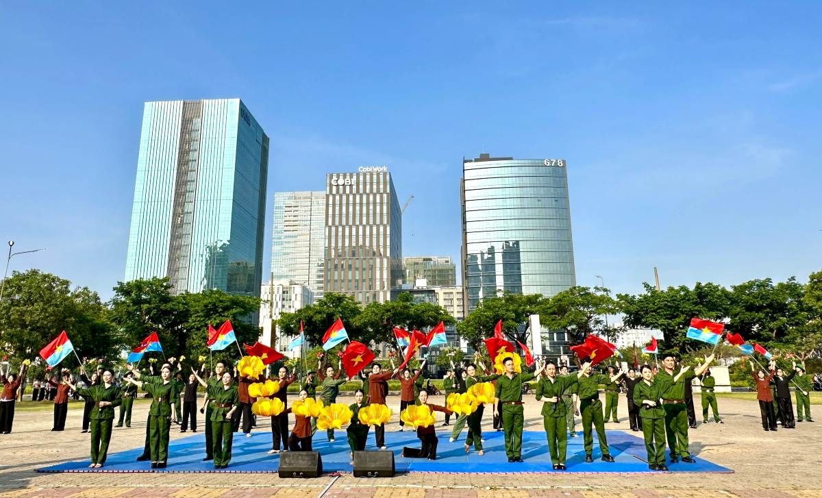Cientos de jóvenes en la ciudad de Ho Chi Minh actúan juntos para celebrar el 30 de abril
