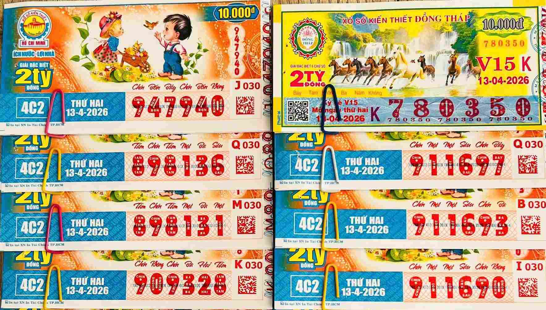 Los resultados de la lotería del sur (XSMN) de hoy, 13 de abril, fueron anunciados por las Compañías de Lotería de Construcción de Ciudad Ho Chi Minh, Dong Thap y Ca Mau.