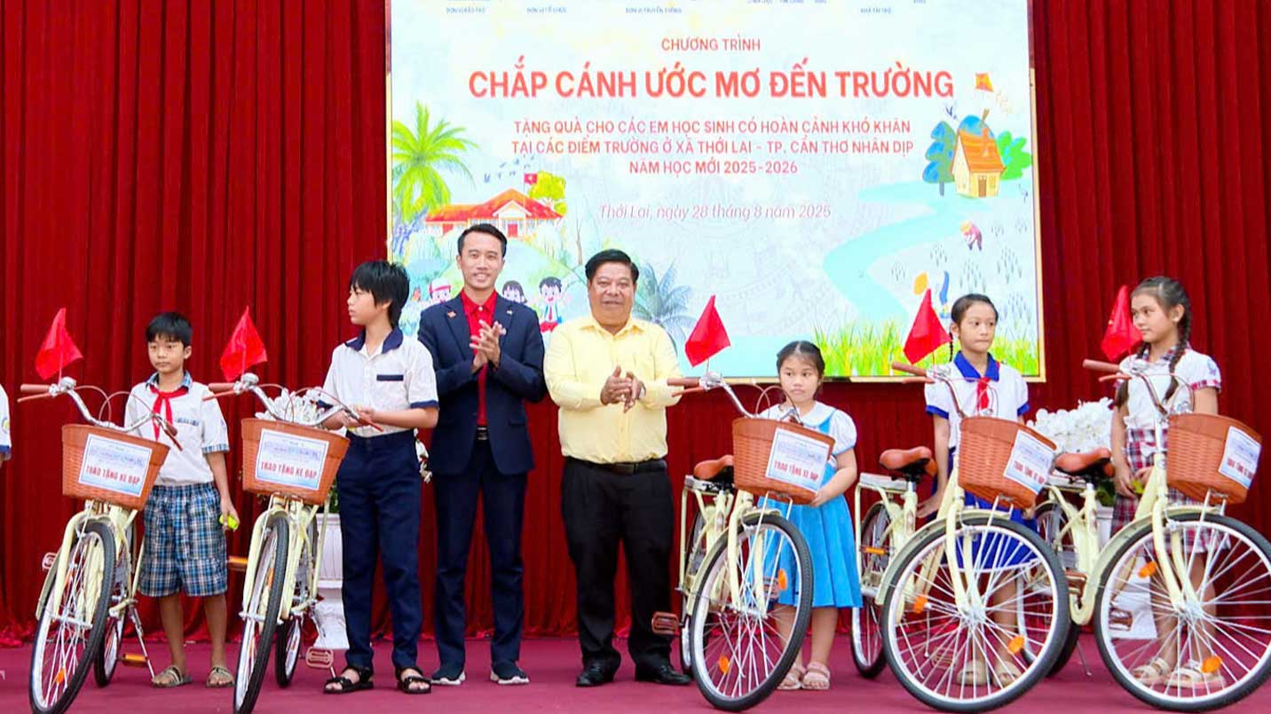 Can Tho - Con motivo del nuevo año escolar se entregaron mas de 100 regalos a los estudiantes en circunstancias dificiles en la comuna de Thoi Lai.