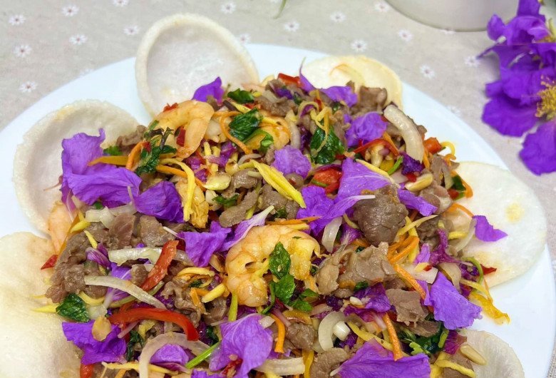 Ít người biết rằng, hoa bằng lăng là nguyên liệu thích hợp để làm thành món gỏi thanh mát cho ngày hè.
