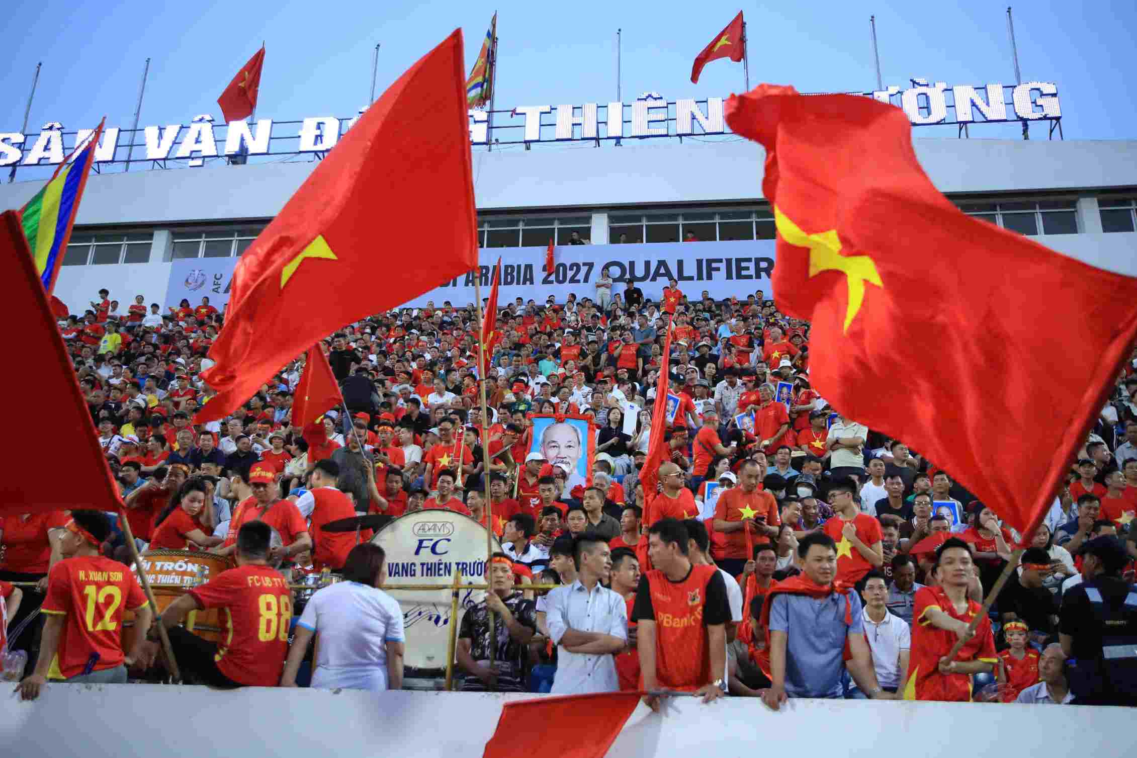 El público tiñe de rojo las gradas animando a la selección vietnamita