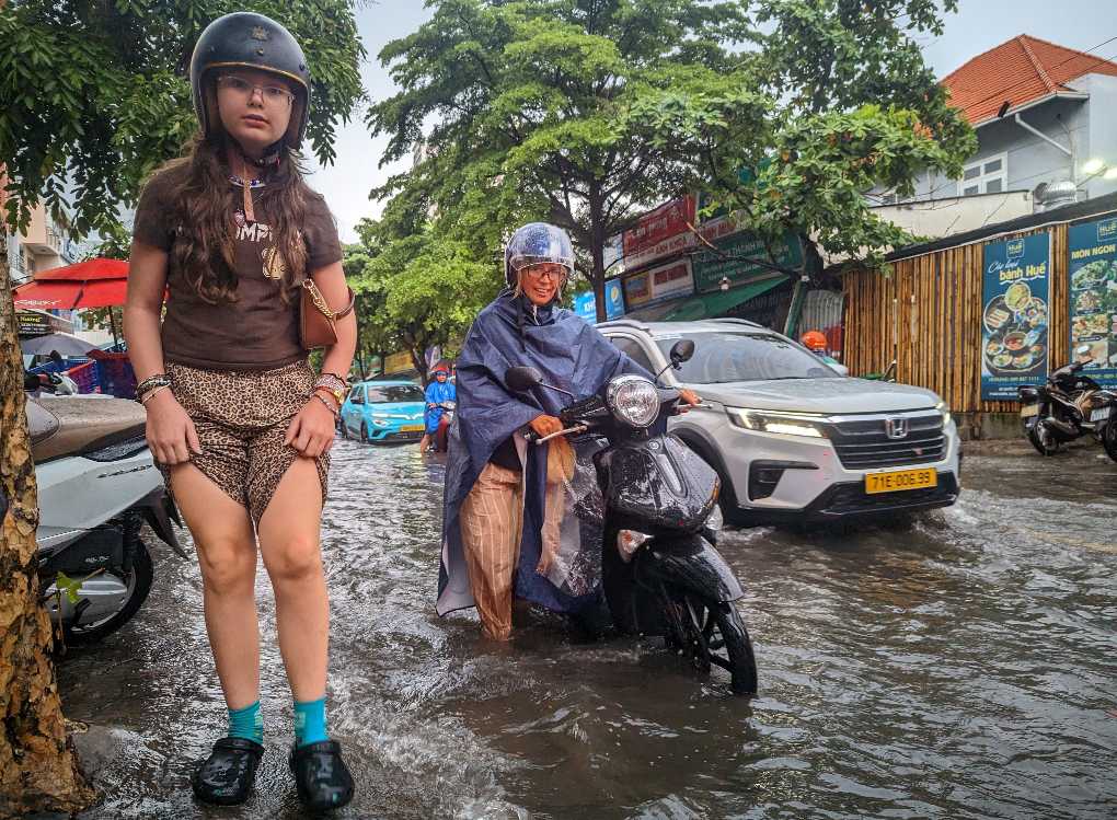 Ciudad de Ho Chi Minh - Pesadas lluvias en la tarde 4.6, lo que provoca que muchos caminos en la ciudad de Ho Chi Minh sean profundos, lo que dificulta mover a las personas.