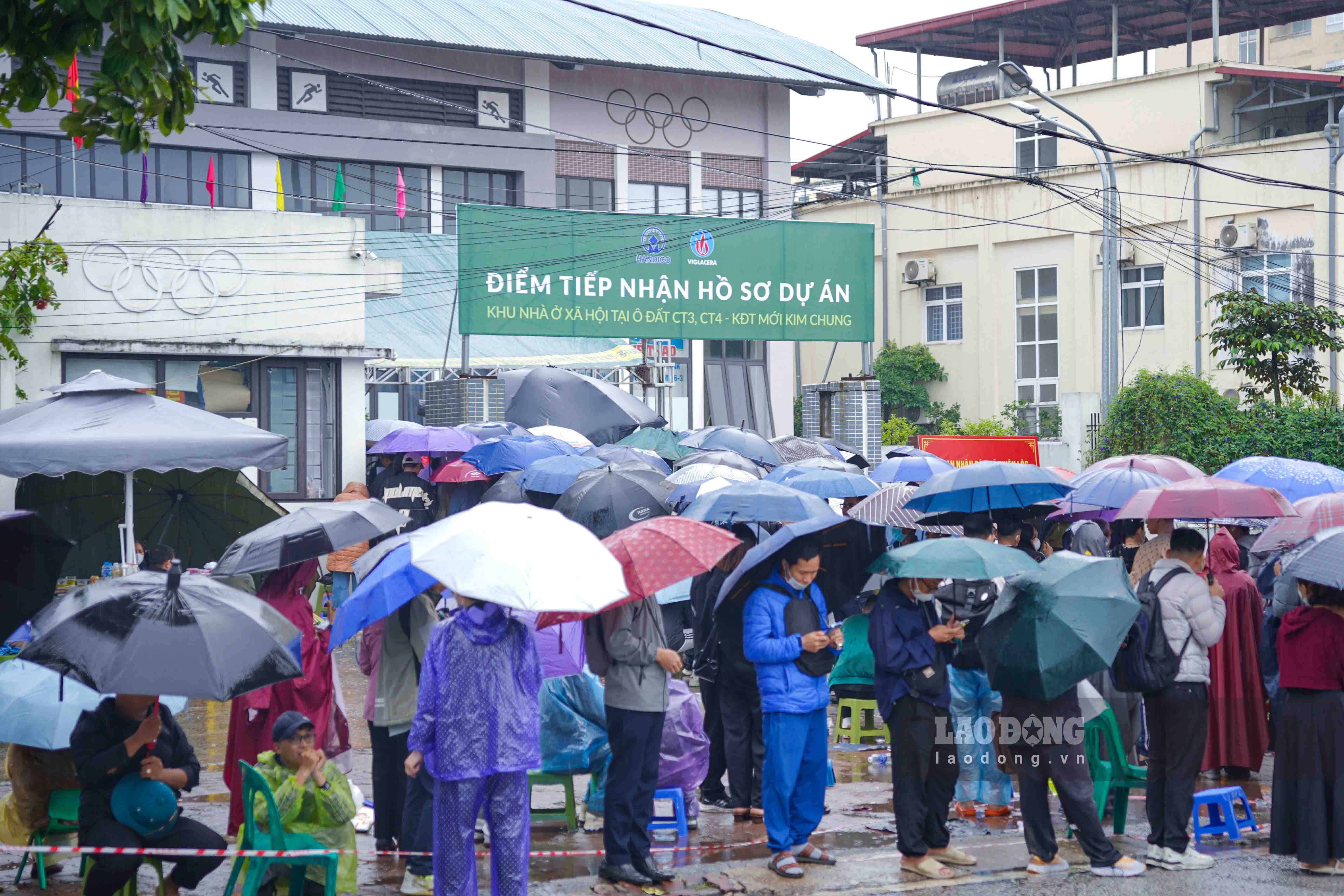 Hanoi - El 18 de noviembre miles de personas continuaron haciendo cola bajo la lluvia esperando para presentar sus solicitudes para comprar viviendas sociales CT3 Kim Chung.