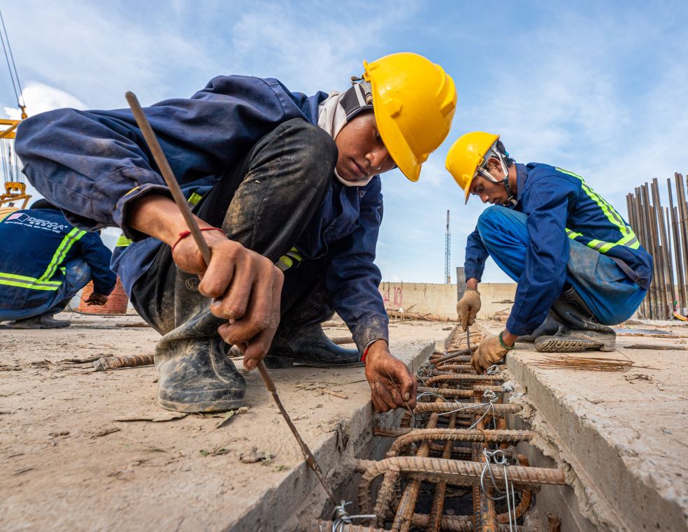 Aunque esta en la temporada alta de lluvias el sitio de construccion del puente Dai Ngai sigue estando animado de dia y de noche con la determinacion de completar el plan correctamente.