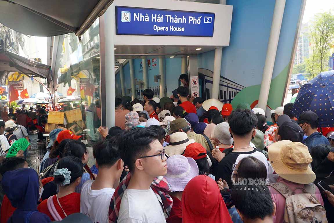 La celebracion del 50 aniversario de la liberacion del sur, la reunificacion del pais tuvo un buen exito. Despues de la ceremonia, la gente se congrego en la estacion de metro.
