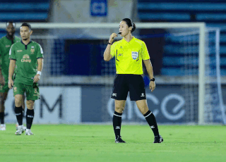 La arbitra Kim Yu Jeong que arbitra el partido del club Nam Dinh llama la atencion por su rostro hermoso y su buena experiencia.