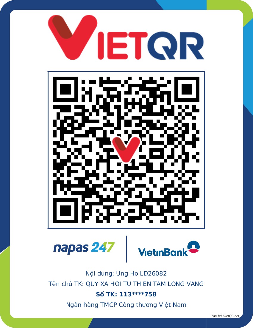 Toda ayuda para la situación de vida de LD26082, por favor envíela al Fondo Social de Caridad Tam Long Vang - 51 Hang Bo, distrito de Hoan Kiem, Hanoi. Número de cuenta (STK) 113000000758 en Vietinbank Sucursal de Hoan Kiem, Hanoi; STK: 0021000303088 - en Vietcombank Sucursal de Hanoi; STK: 12410001122556 - en BIDV Sucursal de Hoan Kiem.