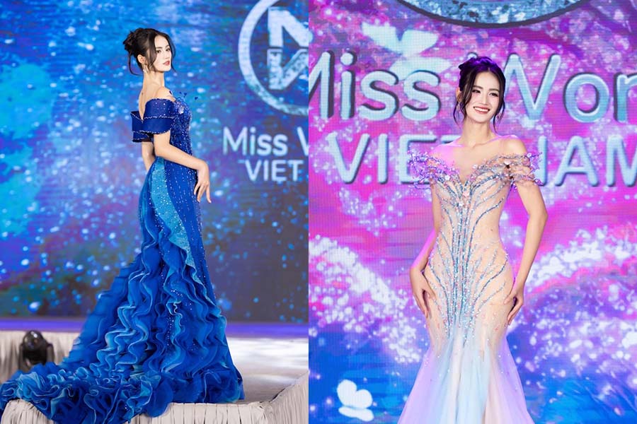 Miss Y NHI elegira uno de los dos diseños de vestidos de noche del diseñador Hoang Tony para usar en el final de Miss Mundial.