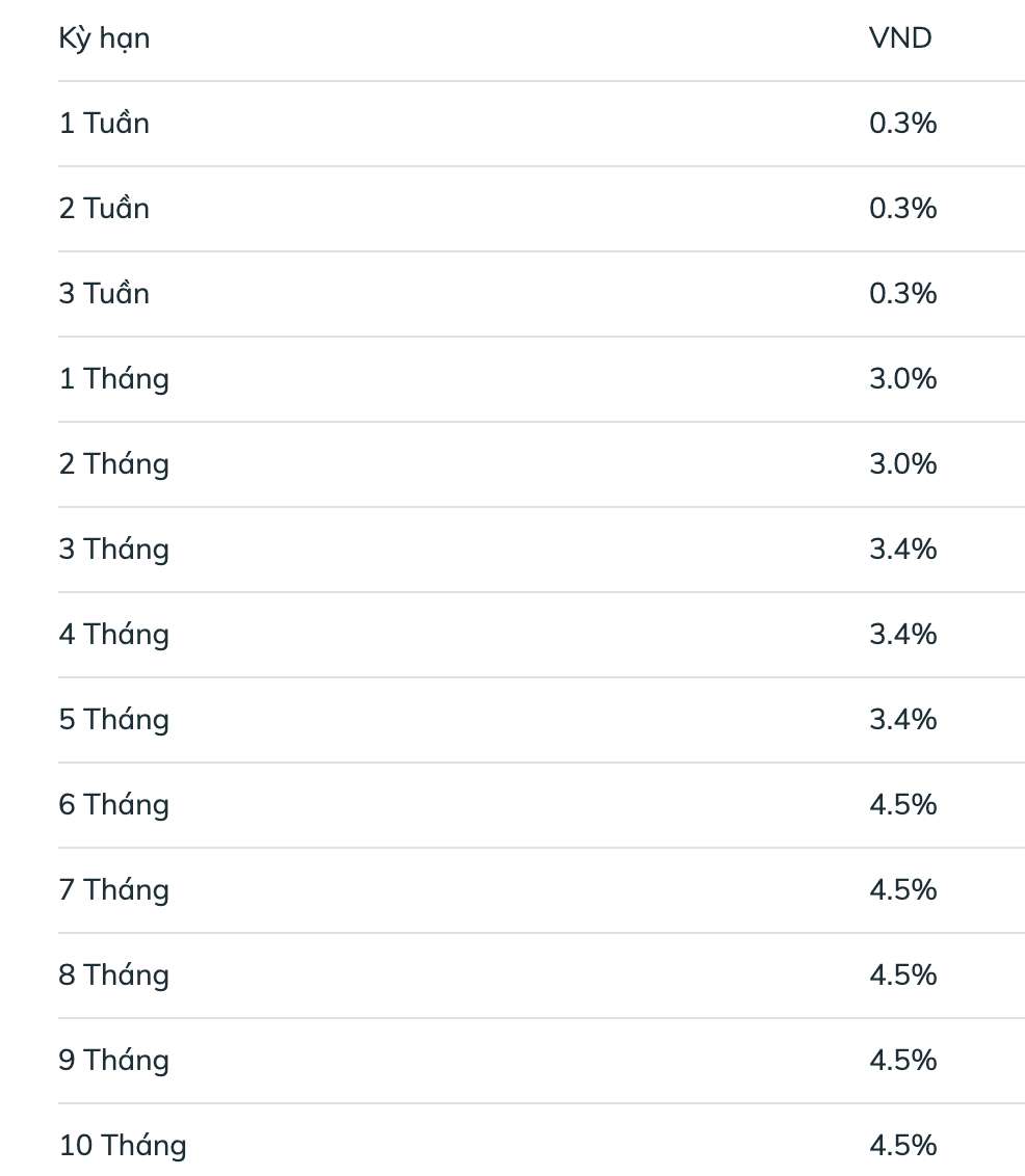 Las tasas de interes de ahorro en BIDV a plazos de 6 a 11 meses son del 4 5%/año. Los clientes que depositan dinero a 12 meses reciben una tasa de interes del 5 2%/año; de 13 a 36 meses reciben la tasa de interes mas alta del 5 3%/año.
