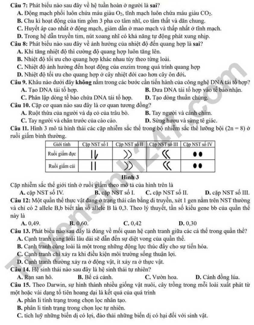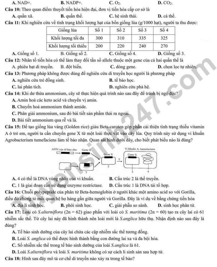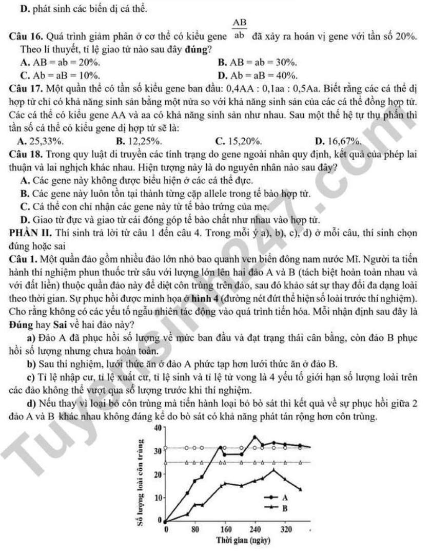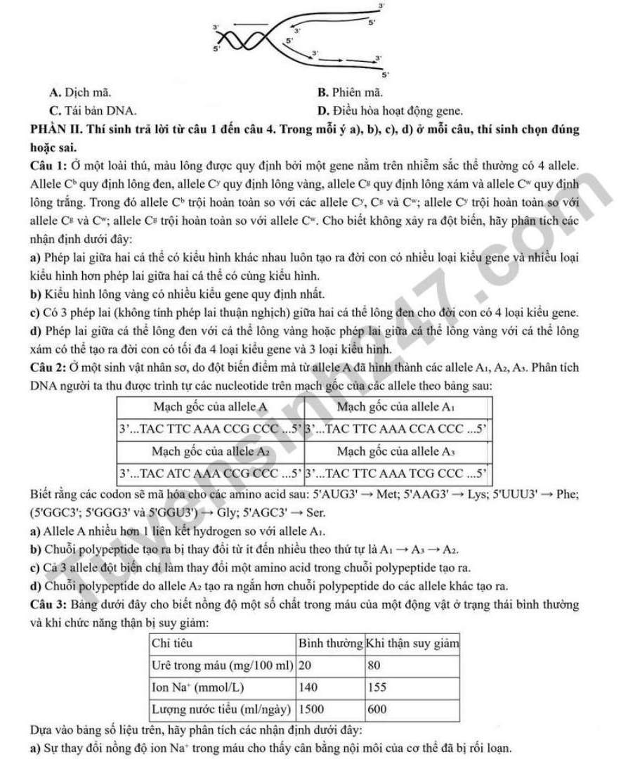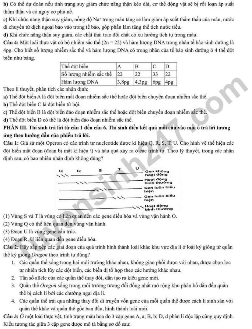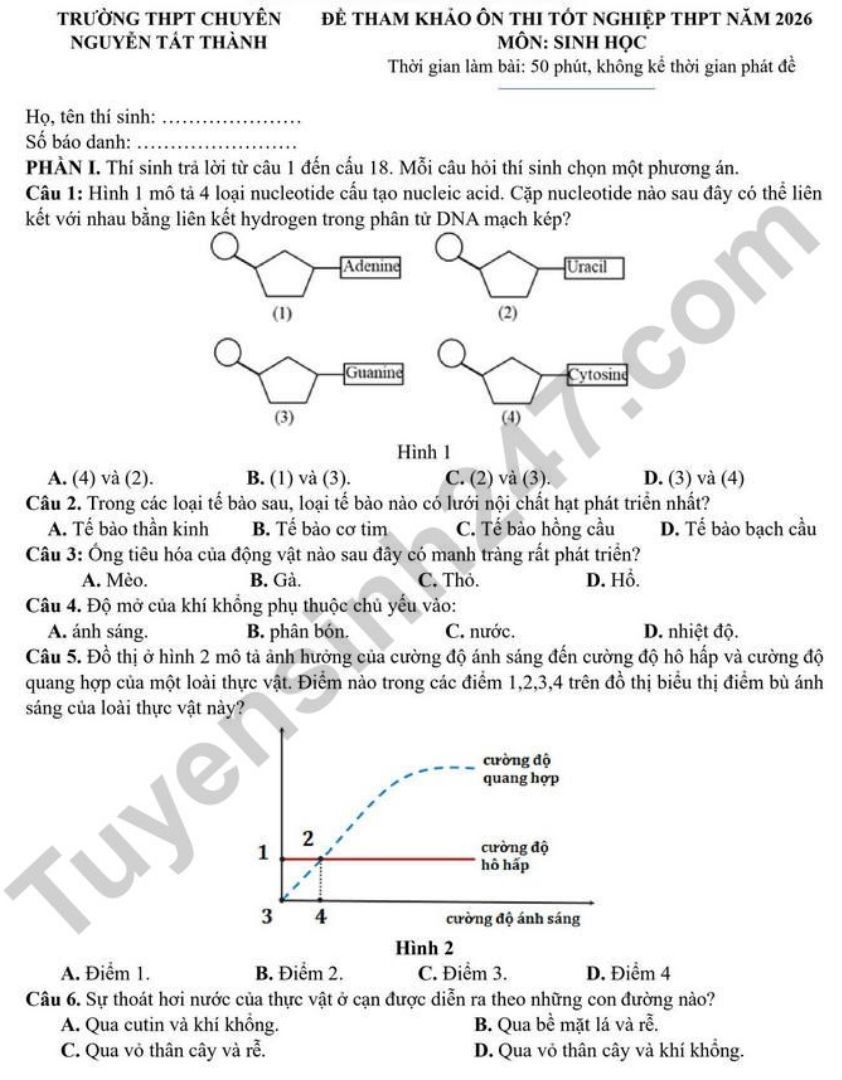 Examen de referencia para el examen de graduación de la escuela secundaria 2026 en Biología - Escuela Secundaria Especializada Nguyen Tat Thanh