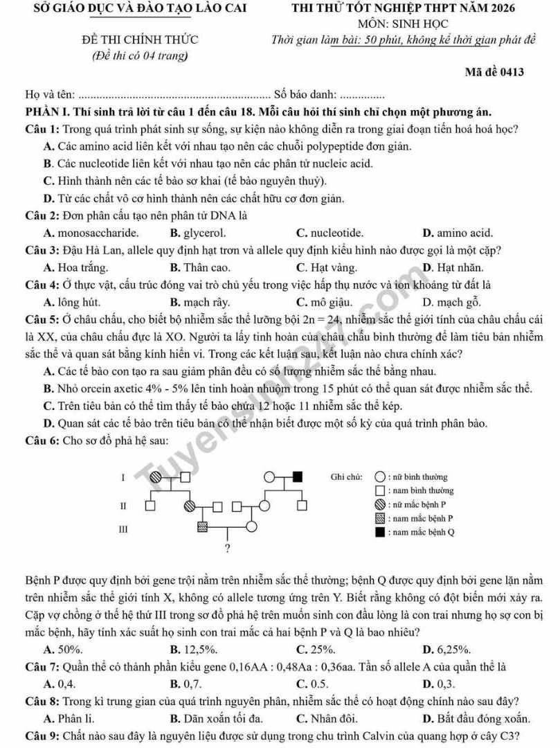 Examen de prueba de graduación de la escuela secundaria 2026 en Biología - Departamento de Educación y Formación de Lao Cai