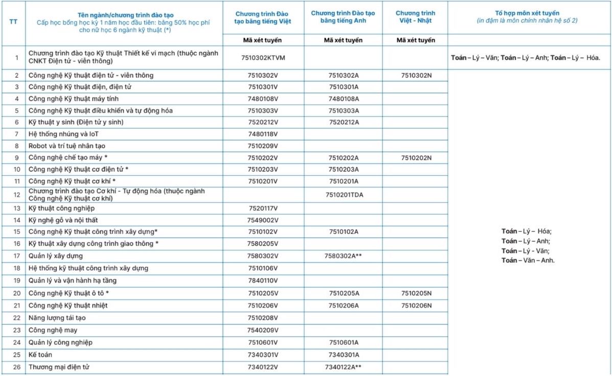 La Universidad de Tecnología y Ingeniería de la ciudad de Ho Chi Minh acaba de anunciar el método de admisión previsto para 2026. Los métodos de admisión específicos son los siguientes: