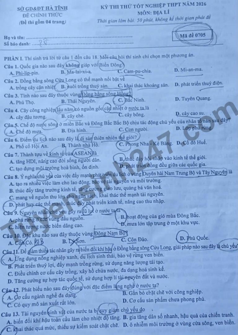 Examen de prueba de graduación de la escuela secundaria de Geografía 2026 - Departamento de Educación y Formación de Ha Tinh