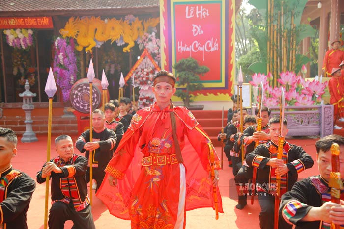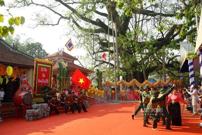 Este es un evento cultural e histórico tradicional que se celebra anualmente a mediados del segundo mes lunar, con el objetivo de conmemorar y agradecer las grandes contribuciones del general Hoang Cong Chat y los soldados justos en la causa de la lucha para proteger la patria y el país.