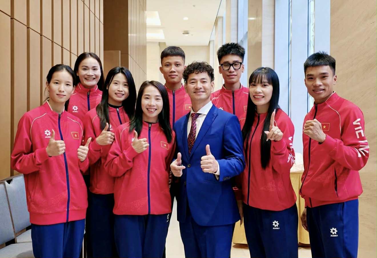 El director Xuan Bac compartio una foto tomada con atletas vietnamitas de atletismo que acababan de lograr grandes resultados en los SEA Games 33.