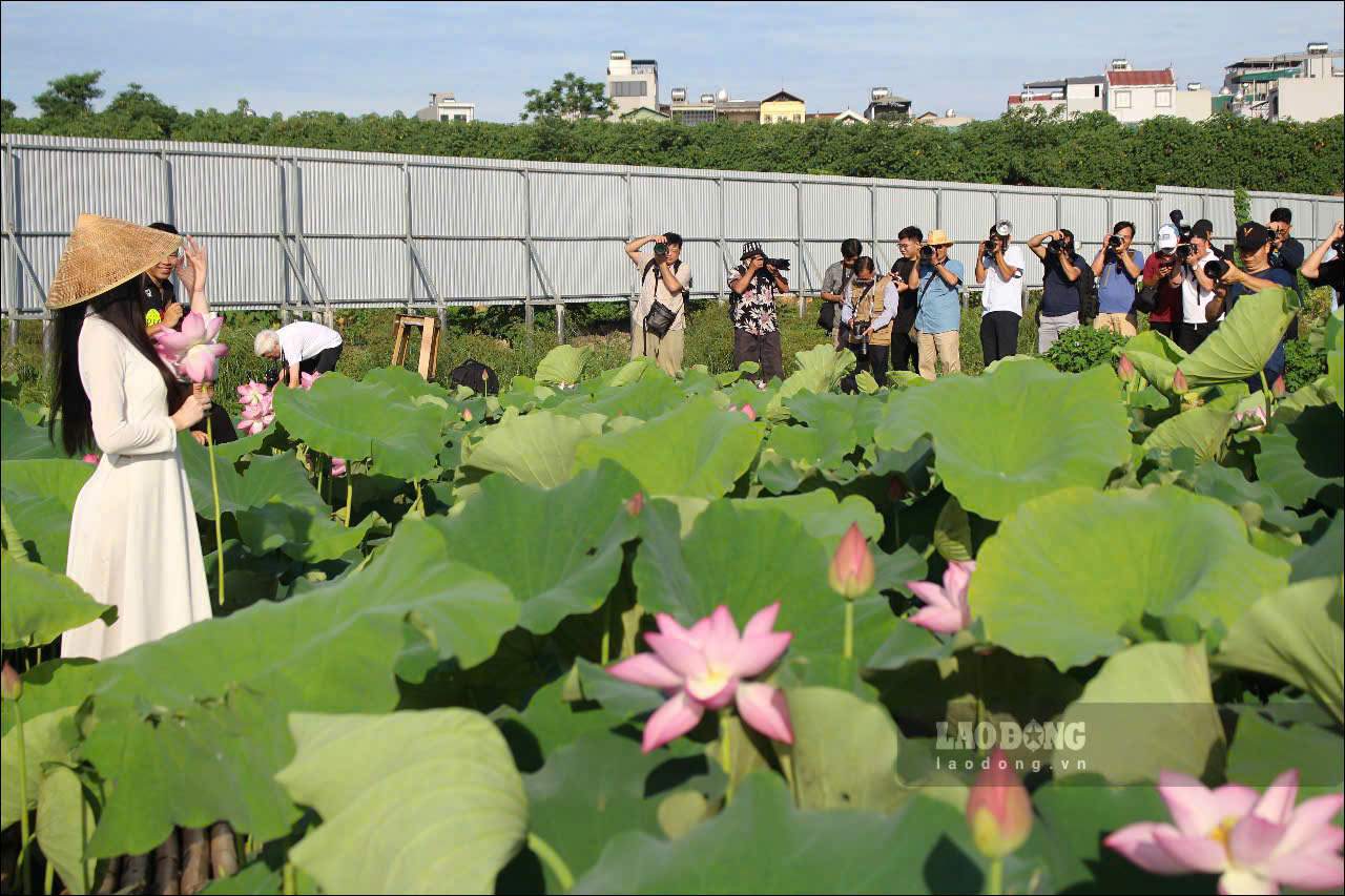 Lotus Pond al comienzo de la temporada en Xuan Dinh (distrito de Bac Tu Liem, Hanoi) atrajo a una gran cantidad de personas a hacer turismo y tomar fotos.