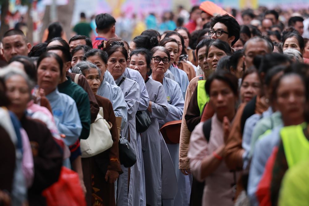 El flujo de personas se alineo para adorar a las reliquias de Buda en Quan Su Pagoda
