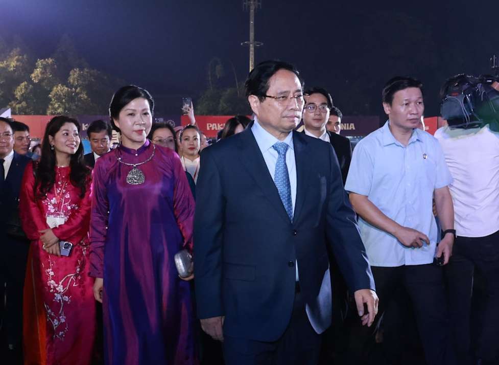 En la noche del 10 de octubre el Primer Ministro Pham Minh Chinh asistio a la inauguracion del Primer Festival Mundial de la Cultura en el Centro de Patrimonio de la Ciudadela Imperial de Thang Long (Hanoi).