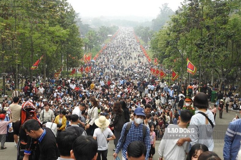 Tens of thousands of tourists flock to Hung Temple before the official holiday