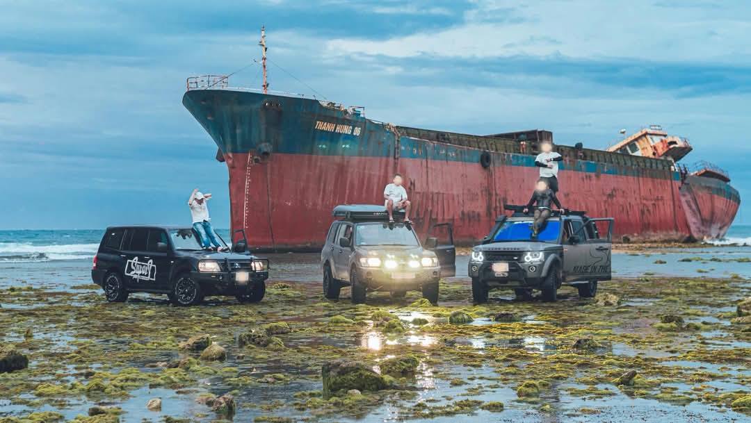 Ninh Thuan - A group of guests driving a car into Tu Thien moss field took a virtual photos on January 3, causing outrage on social media groups.