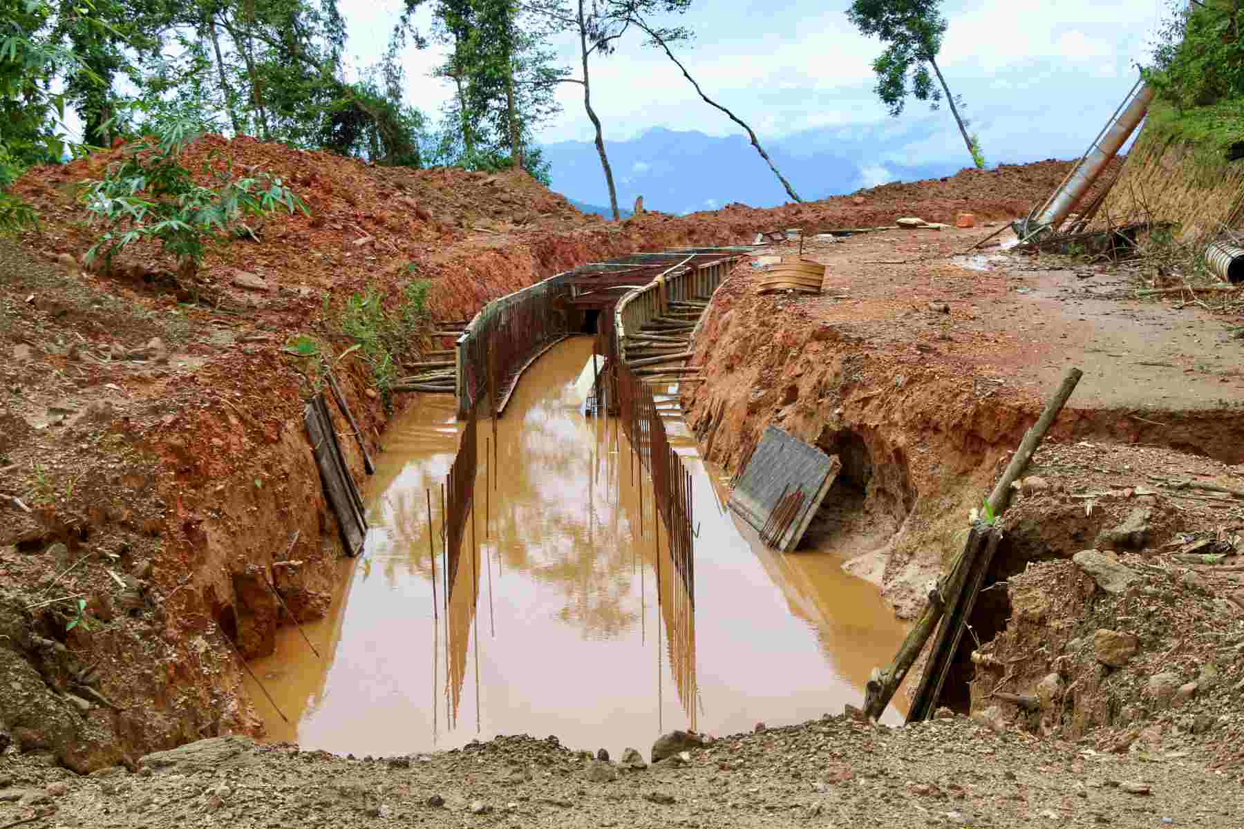Segun el registro del periodista del periodico Lao Dong a principios de octubre de 2025 el area de la presa de retencion de agua y el canal de drenaje aun estan inconclusos. Muchos elementos estan esperando ser desplegados: hierro y acero exuberantes maquinaria precaria sin signos de trabajadores de construccion.