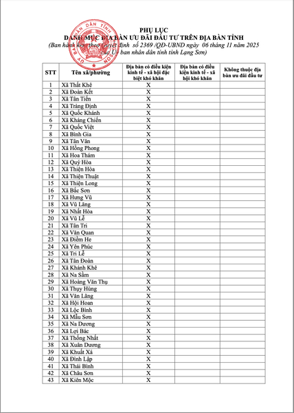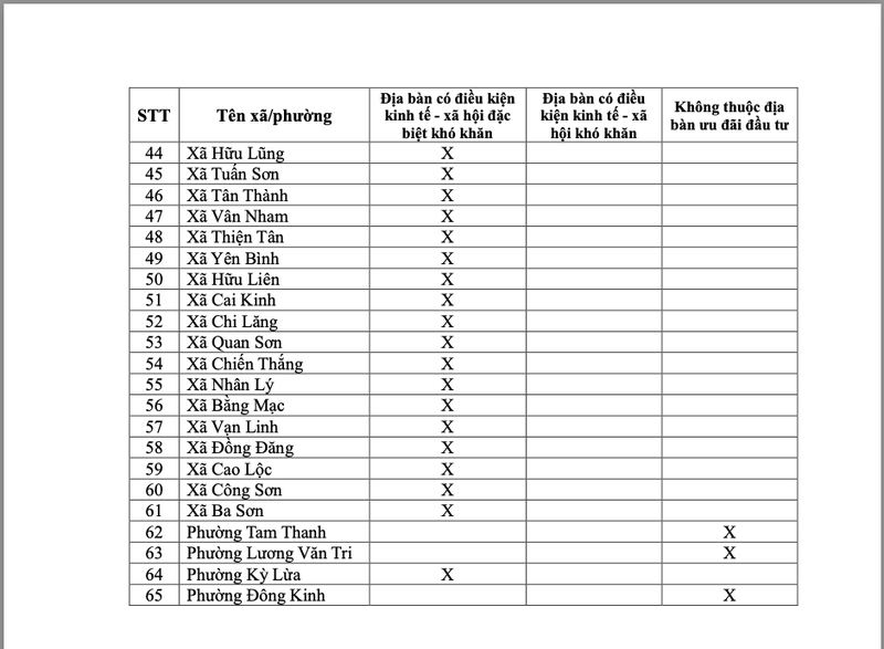 El 17 de noviembre segun fuentes de Lao Dong el Comite Popular Provincial de Lang Son acaba de emitir una Decision anunciando el area preferencial de inversion y el area preferencial de inversion a nivel de comuna en la provincia.