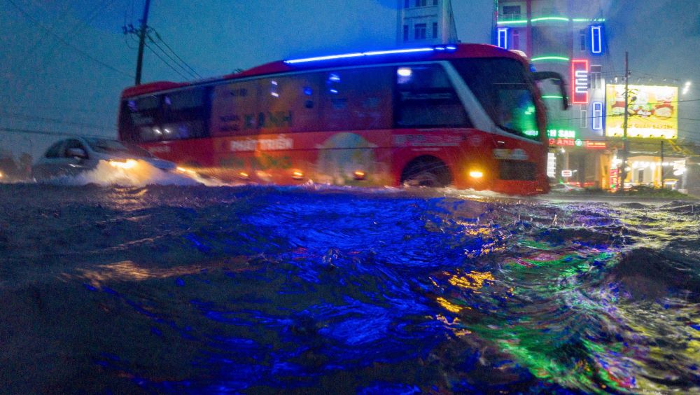 En la ruta Au Co (barrio de Hoa Khanh) el agua de la zona montañosa cae freneticamente creando un flujo turbulento lo que hace que el movimiento sea aun mas peligroso. Algunas zonas residenciales y de apartamentos de Hoa Khanh tambien registraron deslizamientos de tierra e inundaciones localizadas.