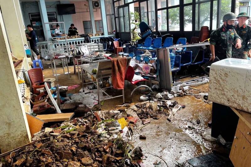 El volumen total de tierra y rocas deslizadas es de aproximadamente 198.000 m3 con daños estimados en 56,7 mil millones de VND de los cuales solo el sistema de carreteras provinciales representa mas de 45 mil millones de VND.