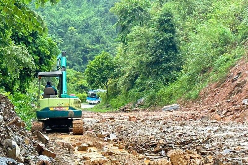 El Sr. Nguyen Trong Hai director de la Junta de Gestion y Mantenimiento de Carreteras de la provincia de Son La informo que la unidad ha movilizado toda la mano de obra y la maquinaria para trabajar durante toda la noche para despejar las alcantarillas y drenar los deslizamientos de tierra.