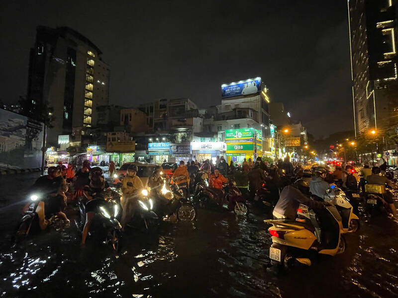 Segun Lao Dong el 8 de noviembre una lluvia torrencial prolongada provoco que muchas carreteras en el centro de la ciudad de Ho Chi Minh se inundaran profundamente. Una serie de motocicletas se quedaron sin bateria y la gente tuvo que dar la vuelta y vadear el agua entre las largas lineas de vehiculos.